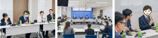 テーブルごとに入社後の過ごし方や学生生活のエピソード、趣味などで話がはずみ、会場は終始和やかなムードでした🎵