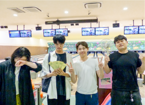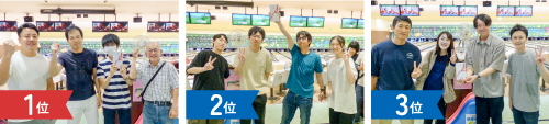 ストライクやスペアを出すと、チーム全員でハイタッチして喜び合っています!