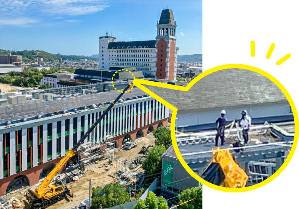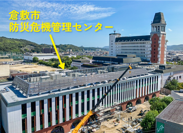 倉敷市役所本庁舎の北側に新設される「倉敷市防災危機管理センター」の屋上の太陽光発電設備工事に、旭テクノプラントが携わっています!