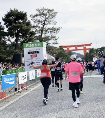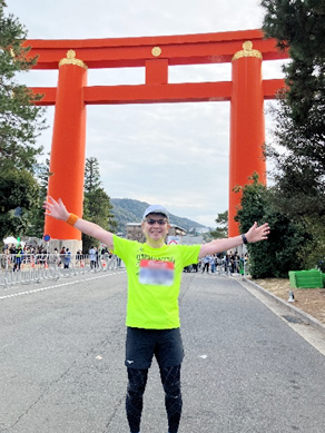 ゴールの平安神宮大鳥居の前でポーズ🙌 達成感でいっぱいです!